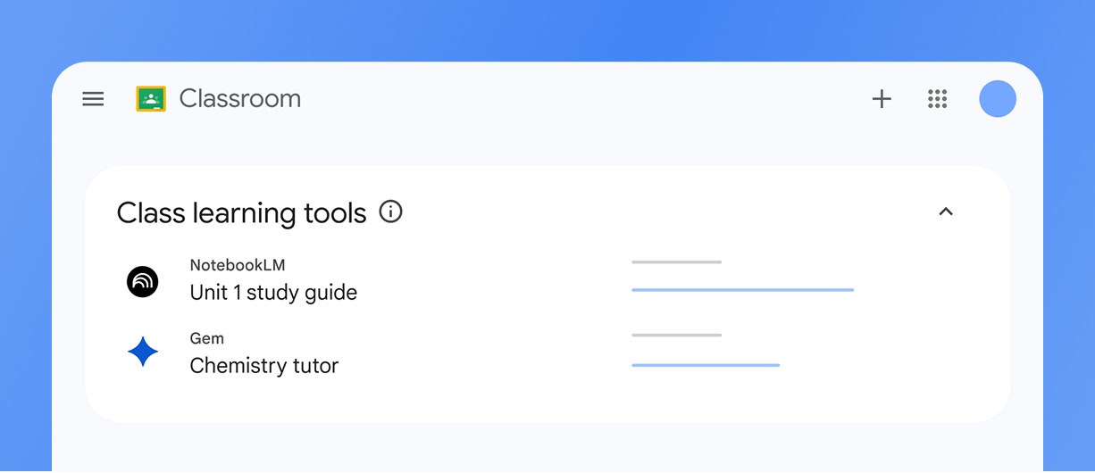 Amplify learning impact with Gemini in Classroom, a suite of AI tools for teaching and learning. Advanced capabilities available with Education Plus and select add-ons.