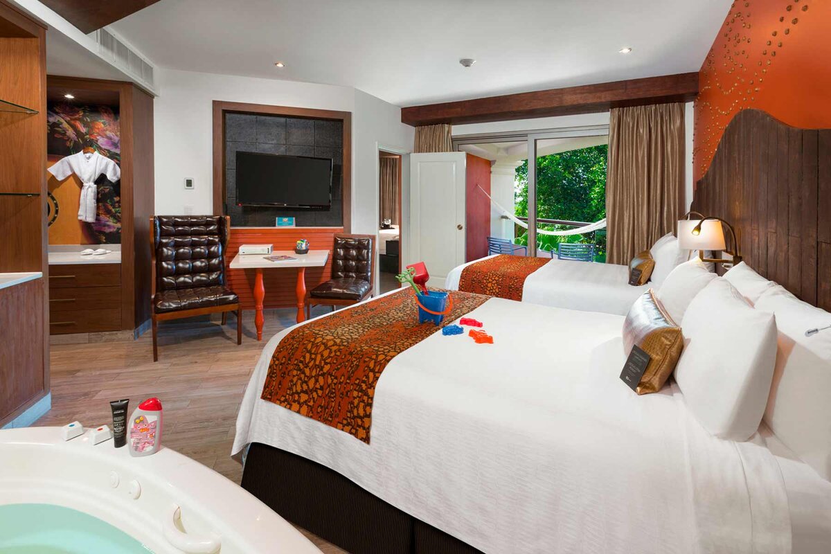 Swap the minivan for the tour van, buckle up, and go for a ride straight to the front row of paradise with world-class extras including two connecting rooms, one with a king bed, the other with two double beds.