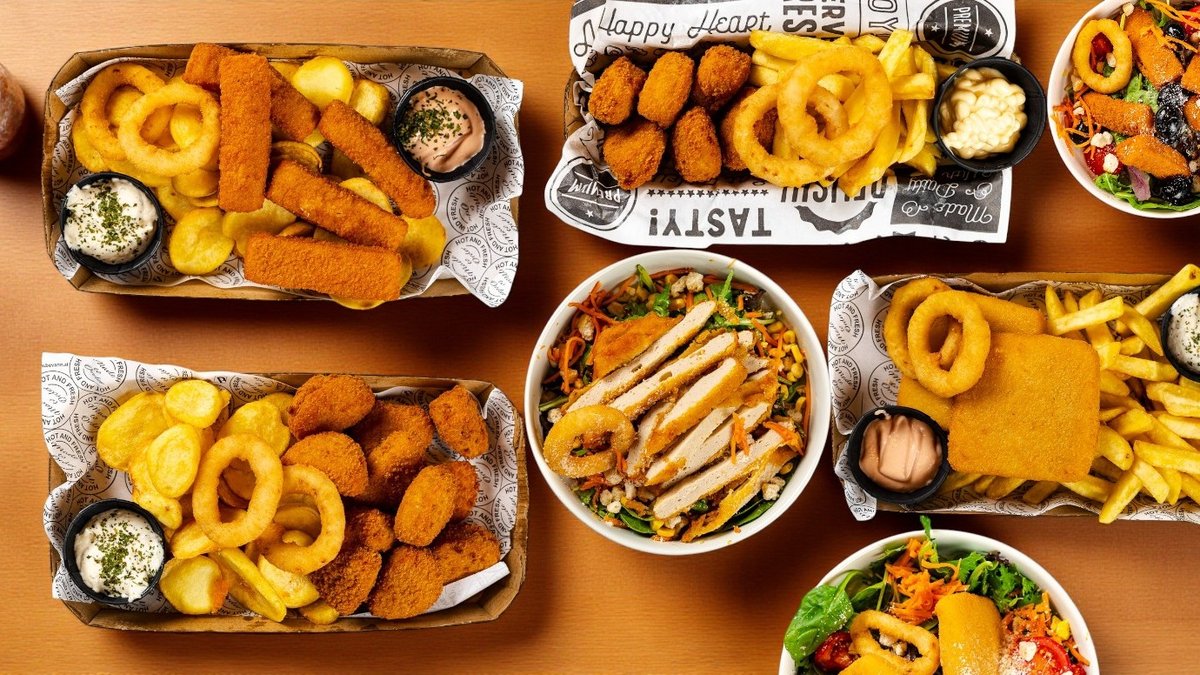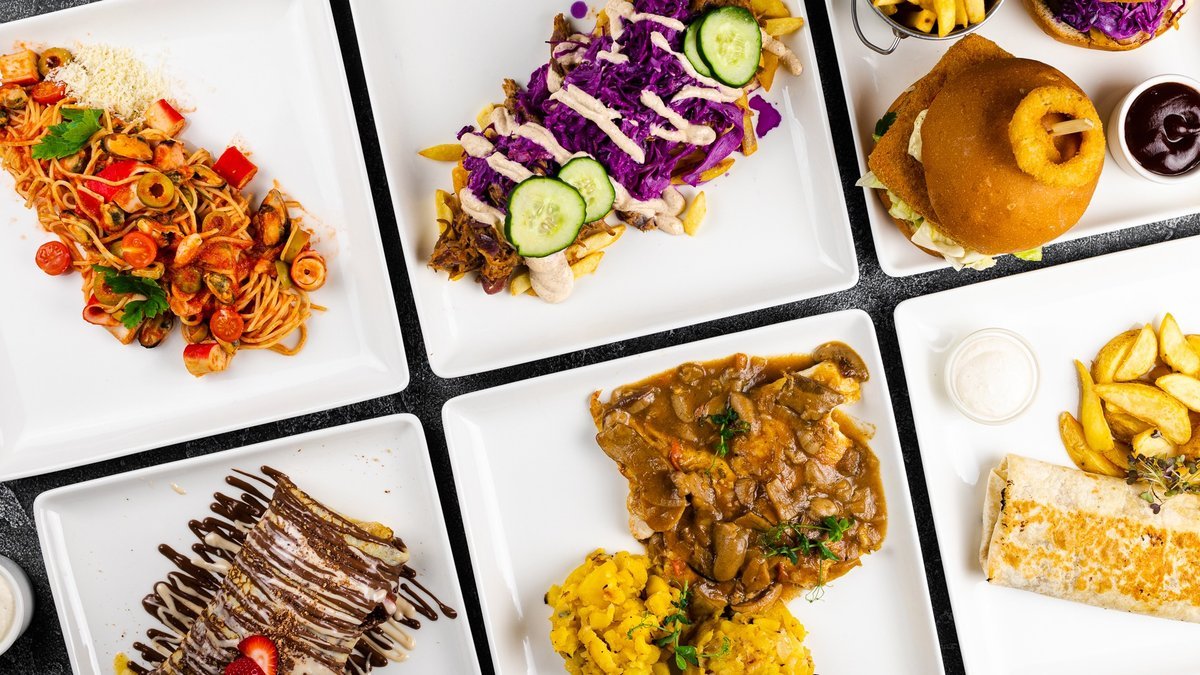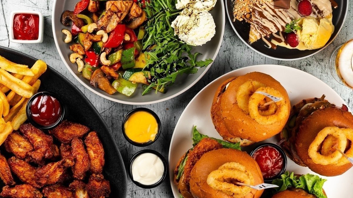 A wide selection of burgers, pasta, salads and other dishes