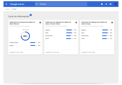 Com o app Google Admin para Android ou iOS, os administradores podem gerenciar as contas em qualquer lugar. Adicione usuários, redefina senhas, veja registros de auditoria, entre em contato com o suporte e muito mais.