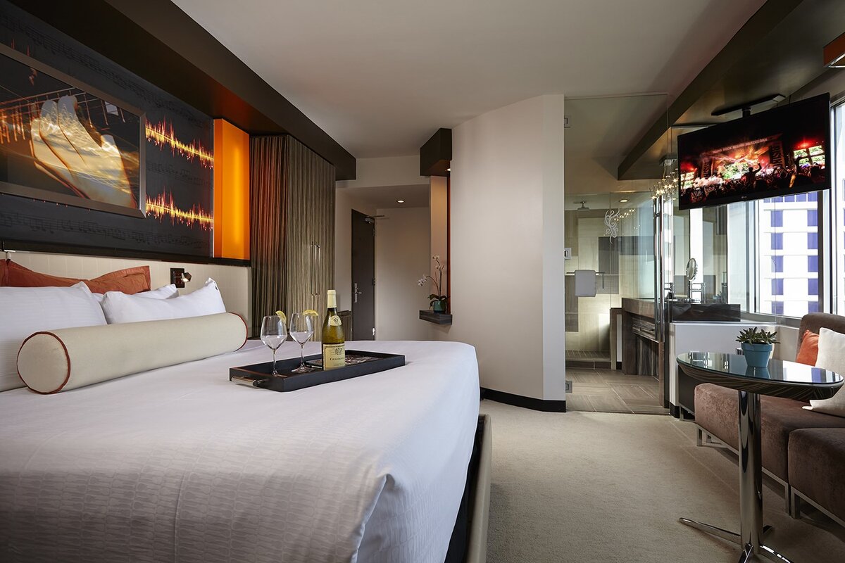 Rock star accommodations are our specialty at Hard Rock Hotel & Casino Biloxi, and you’re the biggest star in the house. Choose from any of the 154 unique non-smoking rooms and suites available in our Platinum Tower or the 325 stylish rooms and suites in our Royal Tower. Rooms in either tower offer incredible views of the city, our world-class pool, and the stunning Gulf of Mexico, and a number of rooms in our Royal Tower are smoker-friendly as well.