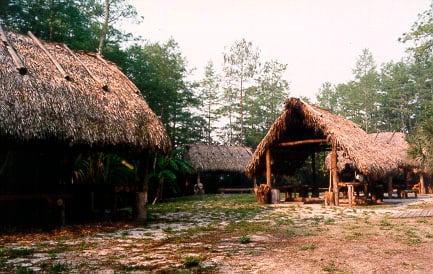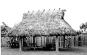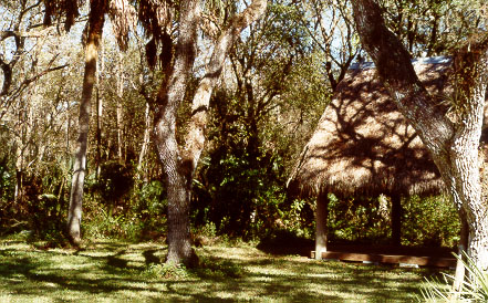 "Chickee" is the word Seminoles use for "house." The first Seminoles to live in North Florida are known to have constructed log cabin-type homes, some two stories tall, with sleeping quarters upstairs. The chickee style of architecture - palmetto thatch over a cypress log frame - was born during the early 1800s when Seminole Indians, pursued by U.S. troops, needed fast, disposable shelter while on the run. Though indigenous peoples in other parts of North and South America have developed similar dwellings, it is generally agreed that the Seminole Indian technique and product are far superior.