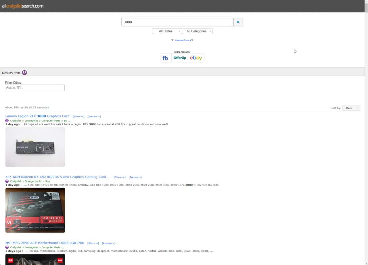 When you use the search feature of Allofcraigs, you will be given a list of cities or regions where your item is most likely to be found. Then you can select one and start browsing through all the results there. You can choose a different region if the location does not have any posts for what you are looking for. Even the listings that do not contain your search word will be shown to you so you can compare what is available in another city or location.